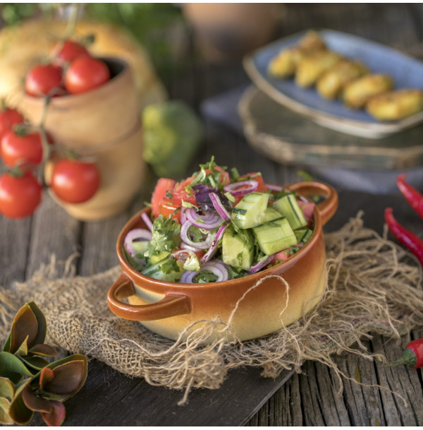 tomatoes, cucumbers, onion, greens